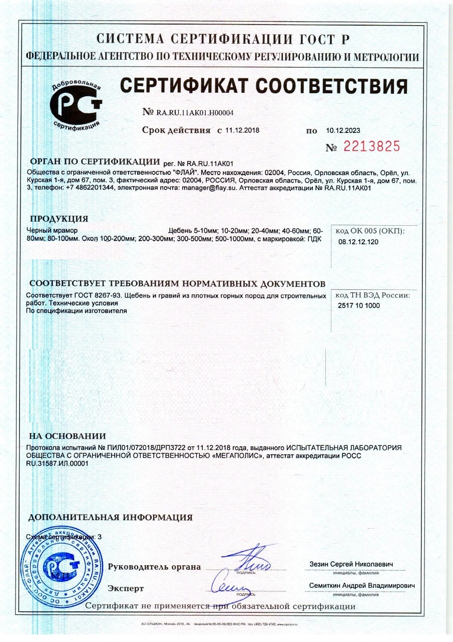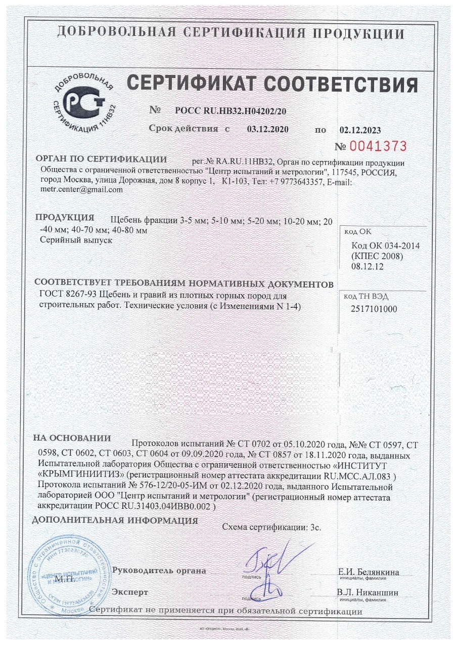 Сертификат соответствия на гальку крымскую